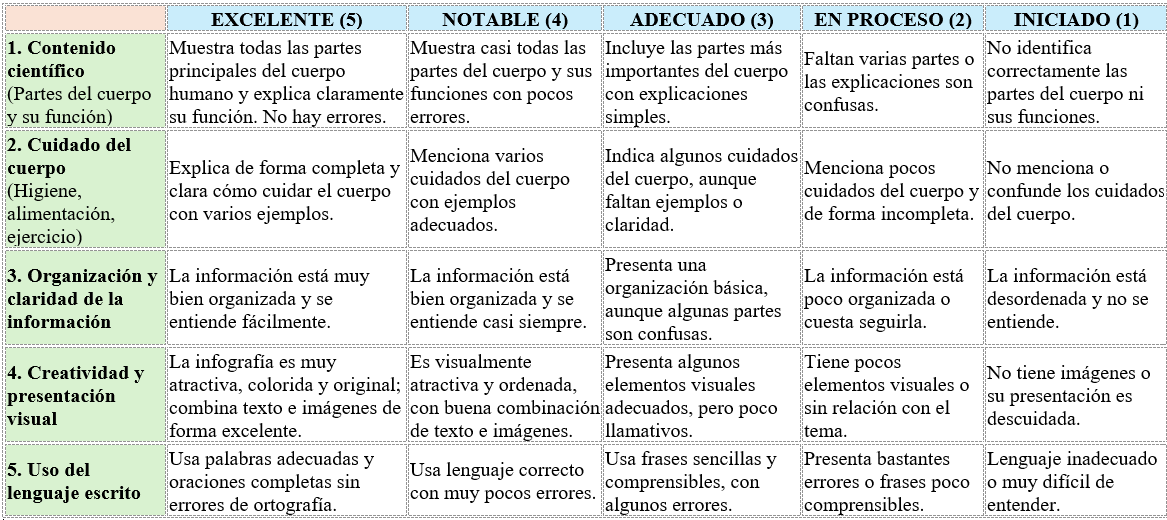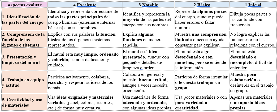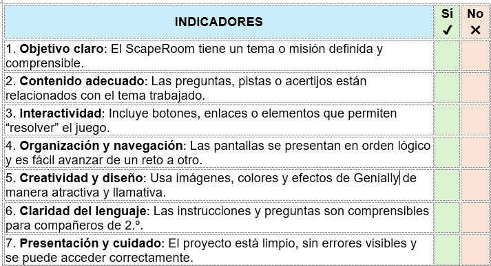 La evaluación de los productos (infografía, murales y scape-room) se evaluarán una vez finalizados y expuestos en clase.